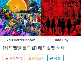 | 레드벨벳 월드컵 시리즈 (0) | 2019.07.30 |